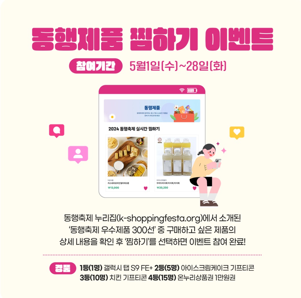 1. 찜하기 이벤트 : 로그인하고 동행제품 중에 갖고 싶은 제품을 30만 원 한도 내 찜하면 자동으로 이벤트 지원
