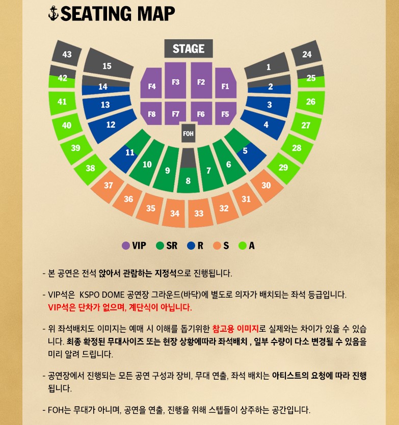 4. 가격 : VIP석 250,000원 SR석 220,000원 R석 198,000원 S석 165,000원 A석 132,000원